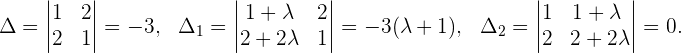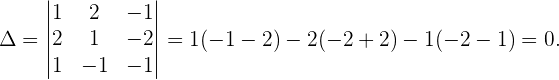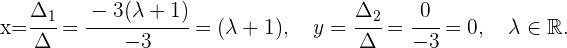 Dieses System hat gleich viele Gleichungen wie Unbekannte, aber die Determinante der Koeffizientenmatrix ist null. Deshalb gilt