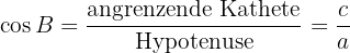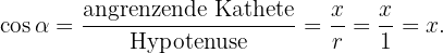 ist das Verhältnis zwischen der dem Winkel angrenzenden Kathete und der Hypotenuse und wird mit