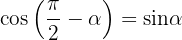 Der Kosinus eines Winkels steht mit dem Sinus desselben Winkels wie folgt in Beziehung: