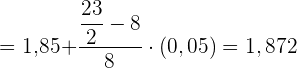 Wir wenden die Formel zur Berechnung des Medians von gruppierten Daten an und extrahieren folgende