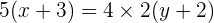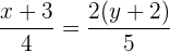 Durch multiplizieren mit 4 löst man den Nenner auf der linken Seite auf. Gleichermaßen löst man den Nenner auf der rechten Seite durch multiplizieren mit 5.