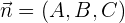 Den Normalenvektor der Ebene erhalten wir aus den Koeffizienten der Variablen, also