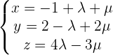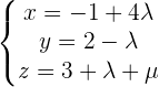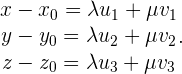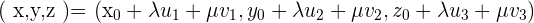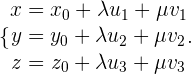 Dieser dient als der andere Richtungsvektor, sodass wir auf diese Weise alles in die Gleichungen der Ebene in ihrer Parameterform einsetzen können: