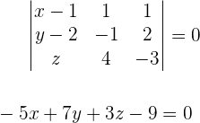 Zunächst bestimmen wir die Ebenengleichung anhand der folgenden Determinante: