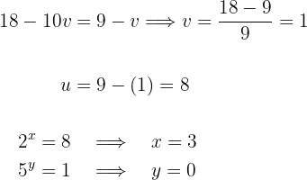 -Gleichungssystem wird aufgelöst. Erinnere dich daran, dass bei Potenzen mit Exponent