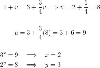 Die Exponenten der ersten Gleichung können jetzt miteinander gleichgesetzt werden, da ihre Potenzen dieselbe Basis haben. Vereinfache nun die Gleichung: