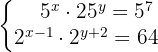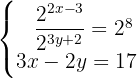 -Gleichungssystem indem du die Exponenten aus beiden Gleichungen miteinander gleichsetzt, da sie auf beiden Seiten dieselbe Basis haben