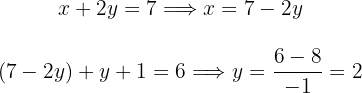 Das Substitutionsverfahren besteht darin, eine von zwei Variablen einer Gleichung zu ermitteln und anschließend das Ergebnis bzw. den so erhaltenen Term in die zweite Gleichung einzusetzen, um den Wert der zweiten Variablen herauszufinden: