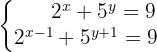 Mache dir die Eigenschaften des Potenzprodukts zunutze, um beide Gleichungen zu vereinfachen und auf jeweils einen Exponenten zu bringen