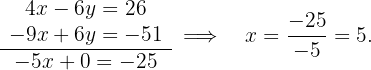 Addiere nun beide Gleichungen Term für Term und du erhältst den Wert für