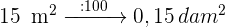 Wir wissen, dass ein Hektar einem Quadrathektometer und ein Ar einem Quadratdezimeter entspricht, also müssen wir durch 100 dividieren