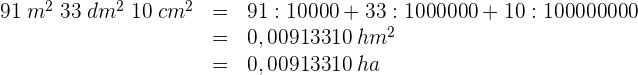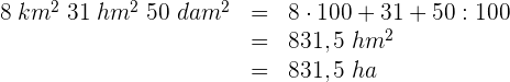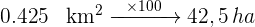 Wir wissen, dass ein Hektar einem Quadrathektometer entspricht; also rechnen wir jedes Element in Quadrathektometer um