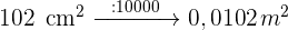 Um Quadratzentimeter in Quadratmeter umzurechnen, dividieren wir durch 10000