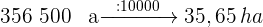 Wir wissen, dass ein Hektar 10.000 Quadratmetern entspricht. Wir dividieren somit durch 10.000