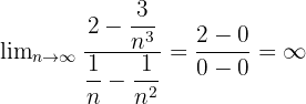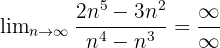 Wenn der Zähler einen höheren Grad als der Nenner hat, ist der Grenzwert, wenn n gegen unendlich konvergiert, ± ∞, abhängig vom Vorzeichen des Koeffizienten höheren Grades.