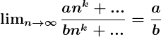 - Grenzwert des Quotienten von Polynomen mit Zähler und Nenner gleichen Grades