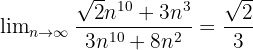 In diesem Fall ist der Grad des Polynoms von Zähler und Nenner 10, so dass der Grenzwert der Quotient der Monome höheren Grades ist, das heißt: