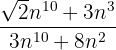 In diesem Fall ist der Grad des Polynoms von Zähler und Nenner 10, so dass der Grenzwert der Quotient der Monome höheren Grades ist, das heißt: