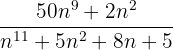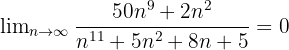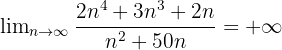 Wenn der Zähler einen höheren Grad als der Nenner hat, ist der Grenzwert, wenn n gegen unendlich konvergiert, ± ∞, abhängig vom Vorzeichen des Koeffizienten höheren Grades.