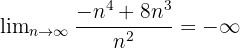 In diesem Beispiel ist der Grad des Polynoms im Zähler 4 und der des Nenners 2, so dass der Grenzwert unendlich sein muss. Da jedoch im Gegensatz zum vorherigen Beispiel der Koeffizient des Monoms höheren Grades im Zähler negativ ist, ist der Grenzwert positiv unendlich, d. h: