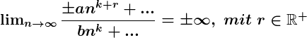 - Grenzwert des Quotienten von Polynomen, bei denen der Zähler einen höheren Grad hat als der Nenner