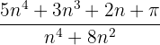 Wie man sieht, ist der Grad des Polynoms von Zähler und Nenner 4, daher ist der Grenzwert der Quotient der Koeffizienten der Monome höheren Grades, d.h.: