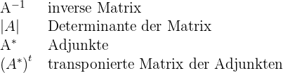 Sie kann berechnet werden, indem man das Produkt der Elemente der Diagonale vom Produkt der Elemente der Gegendiagonale subtrahiert.