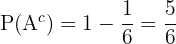 4 Gegenereignis. Für dieses Gesetz nehmen wir an, wir werfen einen normalen Würfel mit den Zahlen