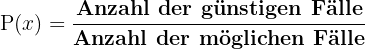 Im Allgemeinen ist die Wahrscheinlichkeit eines Ereignisses das Verhältnis zwischen der Anzahl der günstigen Fälle und der Gesamtzahl der möglichen Fälle, was dem Laplace-Experiment entspricht.