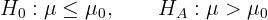 Bei einem einseitigen Test des Typs „kleiner oder gleich“ wird eine Hypothese für den Mittelwert  der Grundgesamtheit getestet, das heißt,
