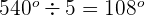 - Der Wert eines Innenwinkels des regelmäßigen Fünfecks ist