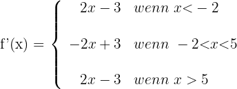 2 Wir berechnen die Nullstellen der 1. Ableitung, dazu setzen wir die Ableitung gleich 0 und lösen nach . Für jeden Teil der Funktion gilt: