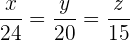 3 Führe eine zu den Zählern 24, 20 und 15 proportionale Zuordnung durch.