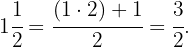 Wir erinnern uns daran, dass wir zunächst den ganzzahligen Teil in einen unechten Bruch umwandeln müssen.