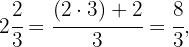 , bedeutet dies, dass der Rest der obigen Division 1 ist und der ganzzahlige Teil 2, wie wir bereits festgestellt haben. Daher lautet der Ausdruck als gemischte Zahl wie folgt