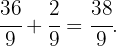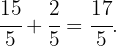 Nachdem wir nun den ganzzahligen Teil in einen Bruch umgewandelt haben, addieren wir ihn zum Bruchteil der gemischten Zahl, d. h. wir addieren wie folgt