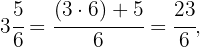 Zunächst müssen wir den ganzzahligen Teil durch folgende Berechnungen in einen unechten Bruch umwandeln: