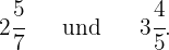 Für die gemischte Zahl ergeben sich zum Beispiel folgende Berechnungen.