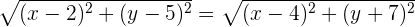 Unter Verwendung der Formel für die Entfernung in der kartesischen Ebene und unter Berücksichtigung der Tatsache, dass
