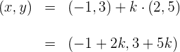 Durch Gleichsetzen erhält man die Parameterform der Geradengleichung.