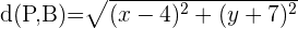 Wir wissen außerdem, dass der Abstand von einem Punkt