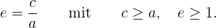 und unter Verwendung der Beziehung zwischen den Halbachsen: Nun befinden sich die Brennpunkte in einem Abstand