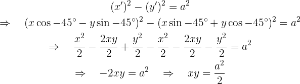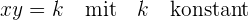 Die Gleichung der gleichseitigen Hyperbel nach einer Drehung um lautet demnach