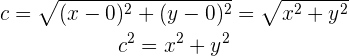 der Abstand zwischen dem Ursprung und dem Scheitelpunkt ist, ergibt sich unter Verwendung der Formel für den Abstand zwischen zwei Punkten Folgendes:
