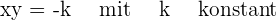 auf den Achsen vornehmen, liegt die Hyperbel im 2. und 4. Quadranten und ihre Gleichung lautet: