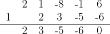 und platzierst sie so, wie es die Ruffini-Regel vorgibt, so erhältst du: