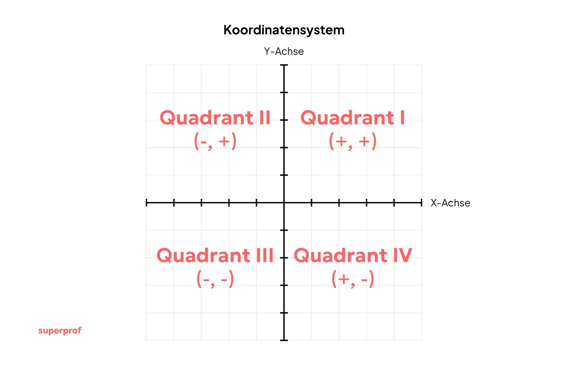 Die Koordinatenachsen teilen die Ebene in vier gleiche Teile, die jeweils als Quadranten bezeichnet werden.