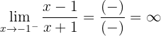 Wenn wir einen Wert zuweisen, der sich von rechts −1 annähert, wie beispielsweise −0,9, ist der Zähler negativ und der Nenner positiv. Der rechtsseitige Grenzwert ist also: