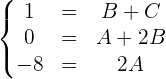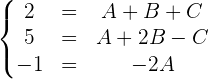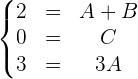und  . Nun setzen wir den Wert von A in die 1. Gleichung ein und erhalten: