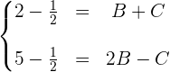 Resolviendo el sistema encontramos el valor de  . Wir setzen in die 2. Gleichung ein und erhalten: